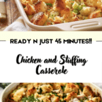 Chicken and Stuffing Casserole is a warm, hearty meal that brings together creamy chicken, savory stuffing, and melted cheese in one comforting dish. Easy to prepare and full of satisfying flavor, it’s a dependable recipe that’s perfect for family dinners, leftovers, or make-ahead meals.
