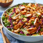 This Chicken Cashew Crunch Salad is a vibrant and flavorful dish featuring shredded chicken, crunchy cabbage, fresh vegetables, and roasted cashews, all tossed in a tangy homemade Asian-inspired dressing. Perfect for a healthy lunch or dinner.