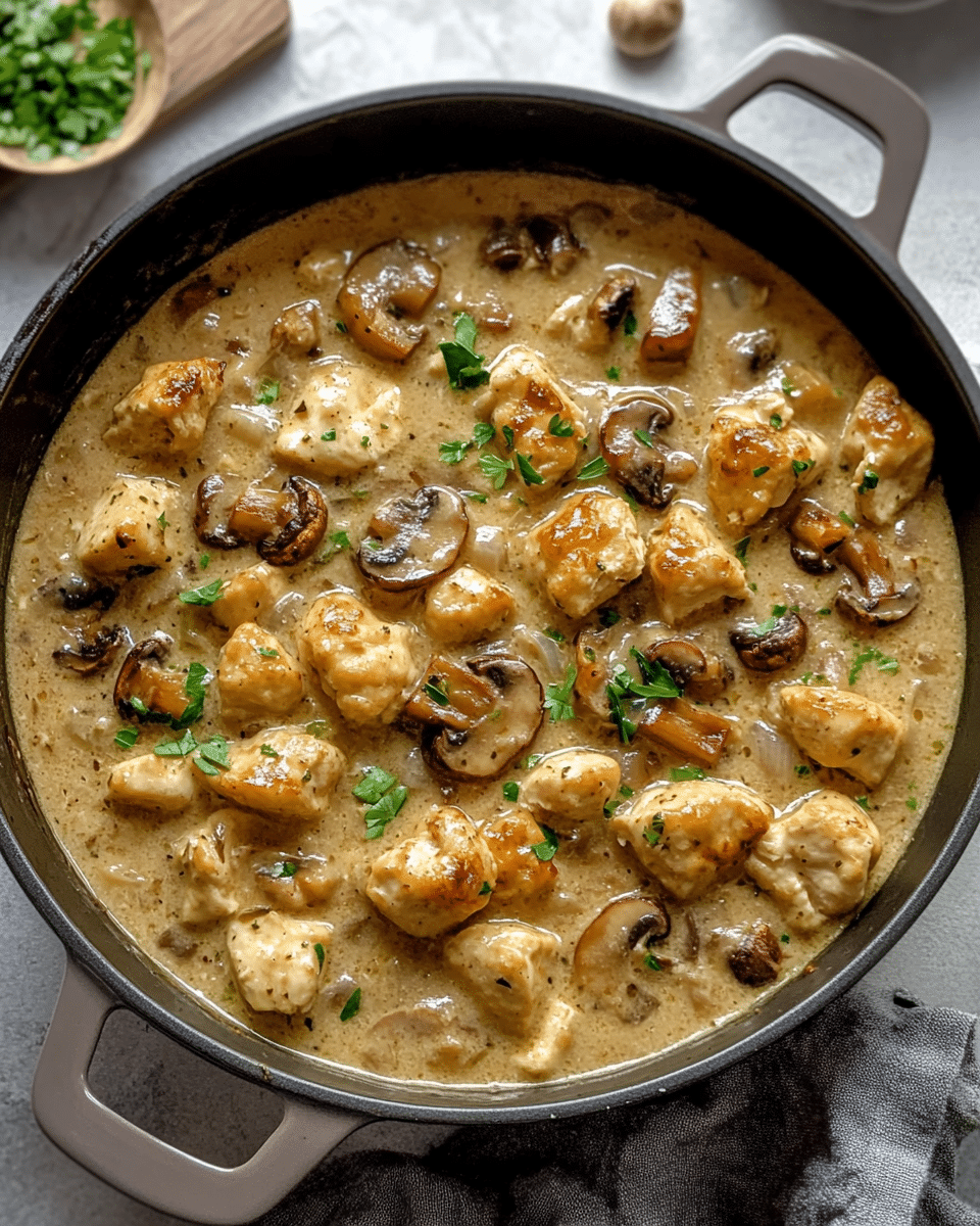 This comforting, creamy casserole combines tender chicken, earthy mushrooms, and a rich sauce. Perfect for a quick and easy meal that will please everyone!