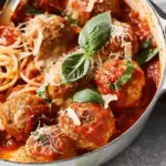 These Chicken Parmesan Meatballs are a delicious twist on the classic Italian dish, combining the flavors of chicken parmesan with the comfort of juicy meatballs, baked to perfection and served in a rich marinara sauce.