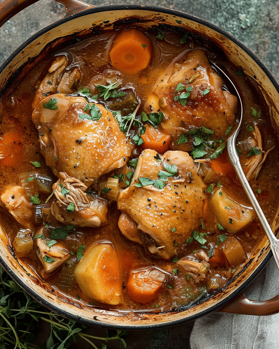 A hearty and comforting chicken stew made with tender chicken thighs, vegetables, and a rich, flavorful broth. Perfect for cold days and easy enough for a weeknight dinner.