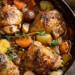 Serve hot, optionally garnished with fresh thyme or parsley, and warm crusty bread on the side to soak up the sauce.