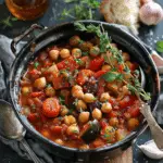 A hearty chickpea and vegetable ratatouille-style stew simmered in tomato and warming spices. This comforting vegan dish is rich, flavorful, and perfect served over quinoa or with toasted bread.
