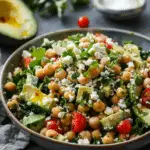 This Chickpea Feta Avocado Salad is a vibrant, protein-packed dish that combines creamy avocado, hearty chickpeas, tangy feta, and fresh vegetables for a nutritious and satisfying meal or side dish.