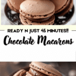 These decadent chocolate macarons, made using the French meringue method, feature a delicate crispy shell with a soft, chewy center. Filled with rich dark chocolate ganache, they’re the perfect treat for special occasions or an indulgent snack.