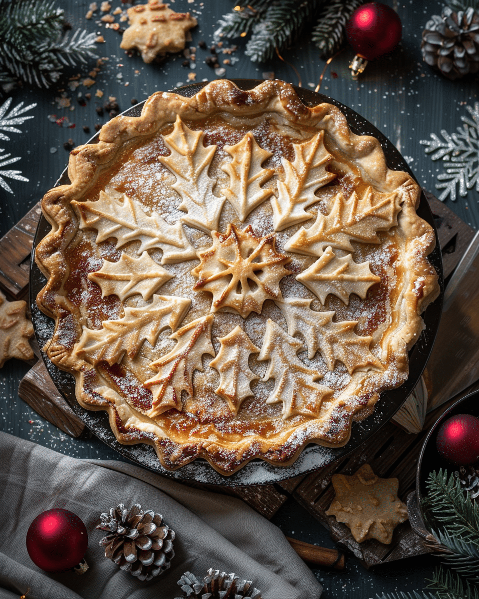 A festive pie filled with spiced fruit, nuts, and a touch of holiday magic, perfect for celebrating the season!