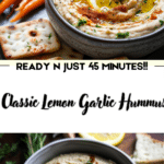 This classic lemon garlic hummus is a healthy, flavorful, and simple recipe that’s perfect for snacking or entertaining. With its creamy texture, bright citrus notes, and nutty richness from tahini, it’s a homemade staple you’ll want to make again and again. Whether you’re hosting or meal prepping, this hummus will quickly become a favorite go-to.