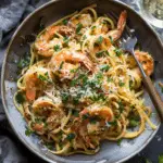 A creamy and zesty coconut shrimp pasta featuring tender shrimp, bright lime, and toasted coconut for a tropical twist.