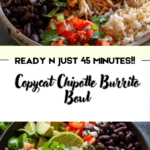 This Copycat Chipotle Burrito Bowl brings fast‑casual flavor to your kitchen with juicy grilled chicken, tangy cilantro‑lime rice, and fresh, customizable toppings. It’s perfect for meal prep, weeknight dinners, or feeding a crowd, and lets you enjoy all your favorite burrito bowl goodness without the restaurant price tag.