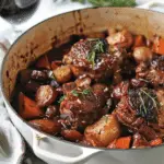 Coq au Vin is a classic French chicken stew braised in red wine with mushrooms, bacon, onions, and garlic. Rich, hearty, and deeply flavorful, it’s perfect for a comforting dinner.