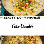 This creamy corn chowder is a hearty and comforting soup made with sweet corn, tender potatoes, crispy bacon, and a rich, flavorful broth. It’s perfect for a cozy meal and easy to make with simple ingredients.