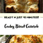 This Cowboy Biscuit Casserole is a hearty and comforting dish made with ground beef, vegetables, cheese, and biscuit dough. It’s a simple and satisfying one-pan meal perfect for busy weeknights or family dinners.