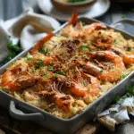 Crab and Shrimp Casserole is a creamy, savory seafood bake featuring tender shrimp, sweet lump crab meat, and a cheesy topping. Perfect for family dinners or special gatherings, this dish combines rich flavors with comforting textures.