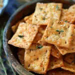 Store the crackers in an airtight container at room temperature for up to 5 days. For longer storage, keep them in the refrigerator where they will stay fresh for up to 10 days. If they lose their crispness, reheat them in a low oven (around 275°F) for 5–10 minutes until crunchy again.
