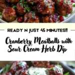 These Cranberry Meatballs with Sour Cream Herb Dip are a crowd‑pleasing, effortless appetizer that brings together sweet, tangy, and creamy flavors. Whether you’re hosting a holiday party or just want a tasty snack, this recipe delivers big taste with minimal fuss.