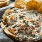 While creamy and indulgent, it incorporates real veggies, making it a slightly lighter option than some heavy party dips.