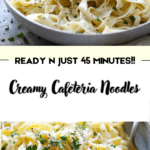 Creamy cafeteria noodles are a comforting side dish featuring tender egg noodles coated in a rich, buttery cream sauce. Simple ingredients come together for a nostalgic and satisfying meal.
