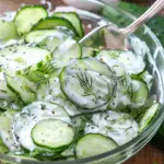 This creamy cucumber salad is a simple yet flavorful side that celebrates cucumbers in all their refreshing glory. With minimal effort and ingredients, you get a dish that’s cool, tangy, and perfect for warm weather meals — whether as a picnic side, a complement to grilled mains, or a quick addition to your dinner table. Let it chill, toss before serving, and enjoy the crisp, creamy goodness.