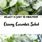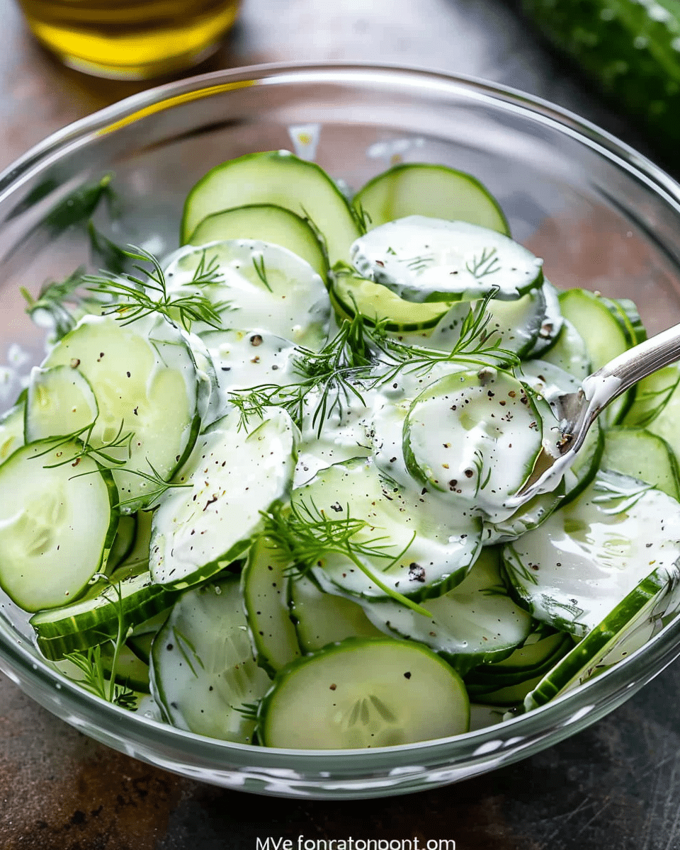 This creamy cucumber salad is a simple yet flavorful side that celebrates cucumbers in all their refreshing glory. With minimal effort and ingredients, you get a dish that’s cool, tangy, and perfect for warm weather meals — whether as a picnic side, a complement to grilled mains, or a quick addition to your dinner table. Let it chill, toss before serving, and enjoy the crisp, creamy goodness.