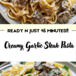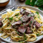 A rich and flavorful creamy garlic steak pasta made with tender seared steak, a luscious garlic parmesan sauce, and fettuccine noodles. Perfect for a comforting dinner that feels gourmet but is simple to make.