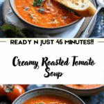 Creamy roasted tomato soup is the ultimate comfort food made simple. Whether you’re looking for a quick dinner or a cozy lunch, this recipe delivers rich flavor with minimal effort. With easy customizations and meal prep potential, it’s sure to become a staple in your kitchen.
