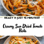 Creamy Sun Dried Tomato Pasta is a rich, indulgent dish featuring tender pasta coated in a velvety sauce made from sun-dried tomatoes, garlic, cream, and Parmesan. It’s easy, flavorful, and perfect for both weeknight dinners and special occasions.