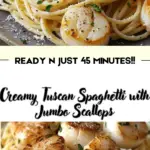 Creamy Tuscan Spaghetti with Jumbo Scallops is a beautifully balanced dish that brings together bold flavors, creamy textures, and elegant seafood in one unforgettable meal. Whether you’re cooking for guests or treating yourself, this recipe is sure to impress and satisfy.