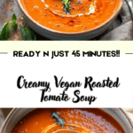 A rich and velvety vegan roasted tomato soup made with caramelized roasted tomatoes and blended to creamy perfection. Perfect for a comforting and flavorful plant-based meal.