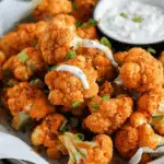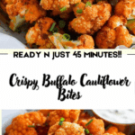Crispy Buffalo Cauliflower Bites offer a flavorful, crunchy, and satisfying alternative to traditional buffalo wings — perfect for vegetarians, casual dinners, parties, or snacks. With simple ingredients, straightforward steps, and flexible options for baking or air frying (and customizing the sauce), this recipe proves that meatless doesn’t mean flavorless. Serve them hot with your favorite dip and veggie sticks, and enjoy a crowd‑pleasing snack that’s both fun and delicious.