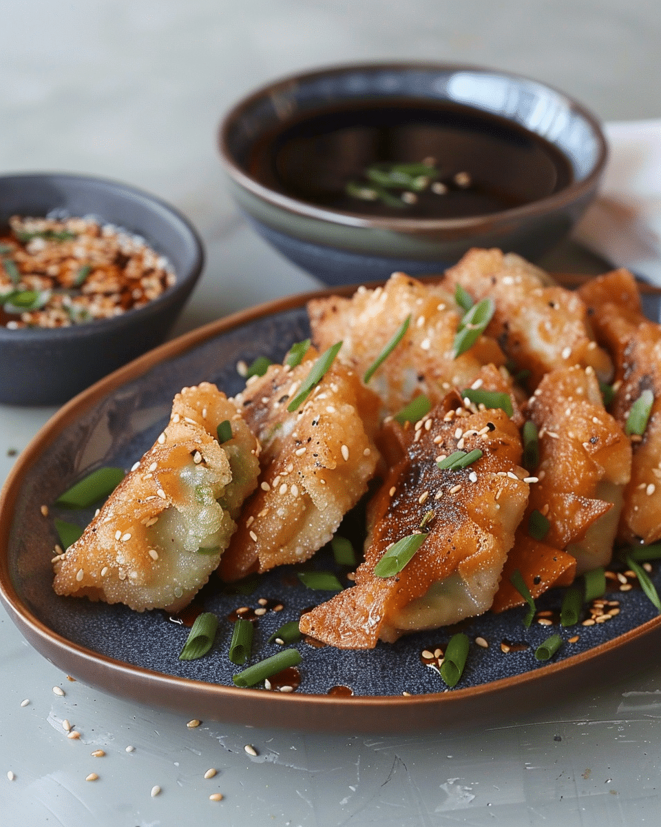These dumplings offer the perfect combination of textures—crispy on the bottom, tender and juicy on the inside. The vegetable filling is light but packed with umami-rich flavor from garlic, ginger, and soy sauce. They’re easy to make at home, customizable with your favorite ingredients, and perfect for meal prepping or entertaining. The soy dipping sauce adds the ideal salty-sweet punch to complement each bite.