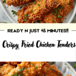 Crispy Fried Chicken Tenders are juicy strips of chicken soaked in buttermilk, coated in seasoned flour, and deep-fried until golden and crunchy.