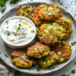 You can also make them a bit heartier by adding a small amount of grated carrot or a spoonful of grated potato, though zucchini should remain the star. For serving, try them with tzatziki, whipped feta, garlic yogurt, or simply a squeeze of fresh lemon.