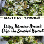These Crispy Parmesan Broccoli Chips, also known as Smashed Broccoli, are a delicious and healthy snack or side dish. Roasted until golden and topped with parmesan, they’re crispy on the outside and tender inside.