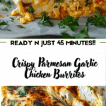 These Crispy Parmesan Garlic Chicken Burritos are a flavorful twist on classic burritos, combining tender shredded chicken, melty cheese, and a crispy golden parmesan crust.