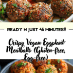 These crispy vegan eggplant meatballs are hearty, flavorful, and perfectly baked for a golden finish. Made with lentils and gluten-free flours, they are a nutritious plant-based alternative.