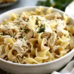 Another reason this recipe stands out is its family-friendly flavor. The chicken becomes tender and easy to shred, and the noodles soak up all of that savory, creamy sauce for a satisfying meal.