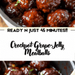 Crockpot Grape‑Jelly Meatballs are the ultimate fuss-free appetizer. With only three ingredients and barely any prep time, you get a batch of sweet, sticky, flavorful meatballs that are perfect for entertaining or snacking. Keep this easy recipe on hand — it’s a guaranteed crowd-pleaser.