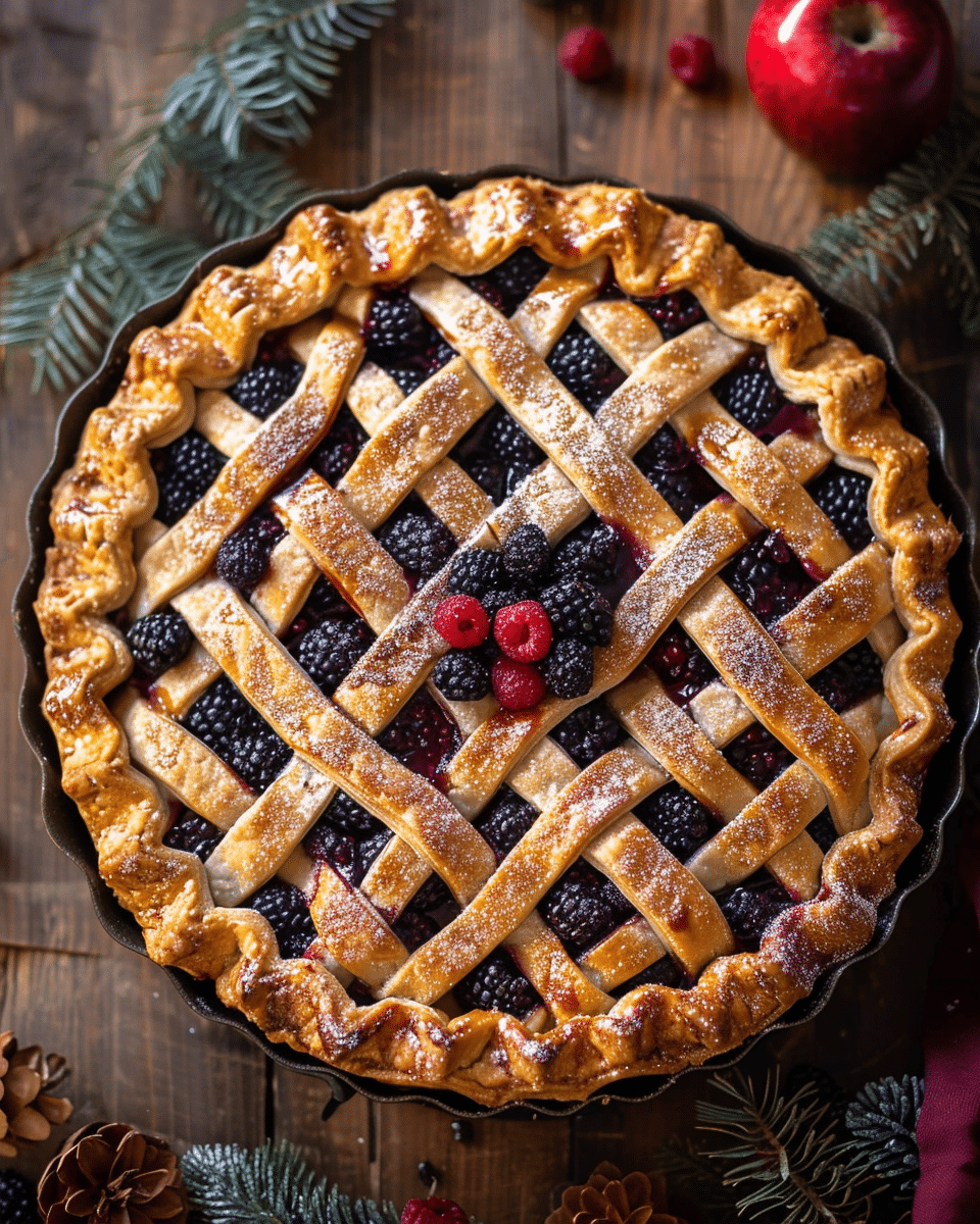 A rustic berry crostata filled with fresh strawberries, blackberries, and blueberries, baked in a flaky buttery crust and served with a light ricotta cream.