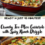 This Crunchy Tex-Mex Casserole with Spicy Ranch Drizzle brings together bold flavors, simple prep, and satisfying texture in one delicious dish. Whether for a quick weeknight meal or a casual gathering, it’s sure to impress with its layers of creamy, crunchy, and savory goodness.