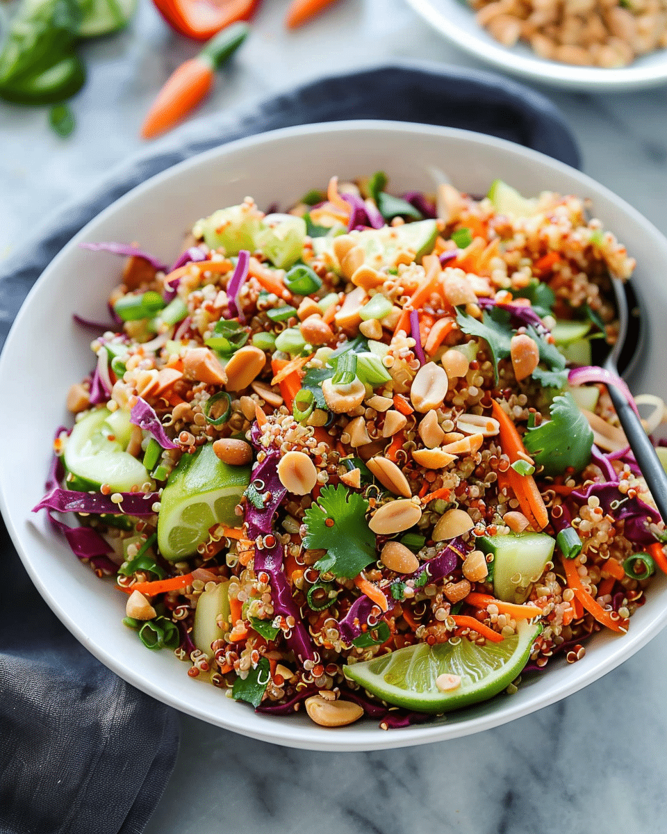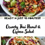 This Crunchy Thai Peanut & Quinoa Salad is a vibrant, nutrient-packed dish featuring quinoa, fresh vegetables, and a creamy Thai-inspired peanut dressing. It’s perfect as a light meal or side dish, offering bold flavors and satisfying textures.
