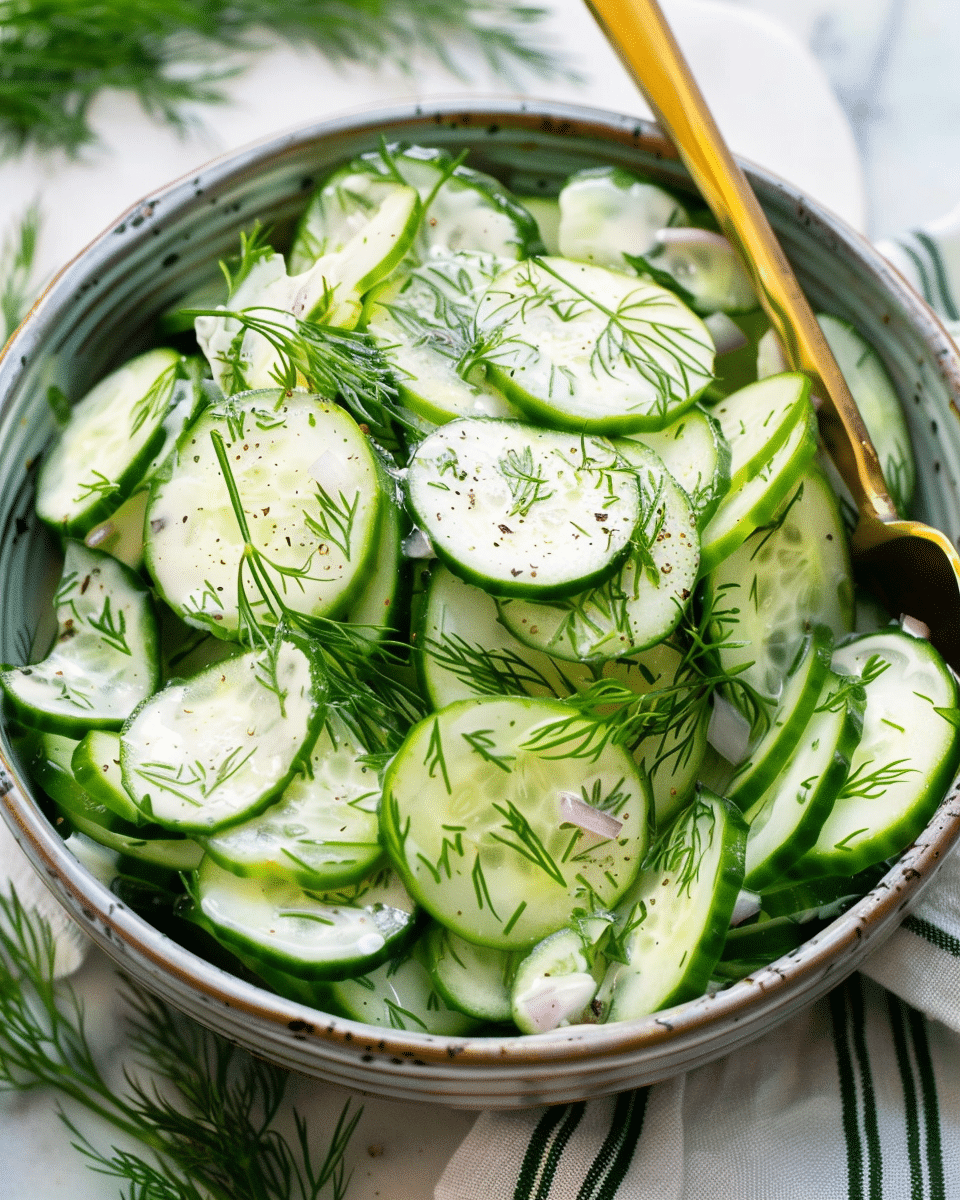 This Cucumber Dill Salad is a refreshing and easy-to-make side dish featuring crisp cucumbers, creamy dressing, and bright dill flavor. Perfect for barbecues, picnics, or a light complement to grilled meats and summer meals.