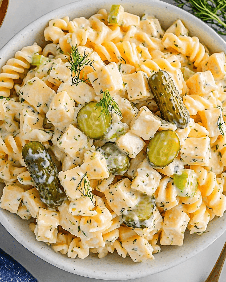 Dill Pickle Pasta Salad is a tangy, creamy, and crunchy dish that will quickly become a favorite at any gathering. The combination of dill pickles, cheese, and a flavorful creamy dressing makes it a standout side dish that pairs well with almost anything. Whether you’re serving it at a barbecue, a potluck, or just as a family meal, this salad is sure to be a crowd-pleaser!