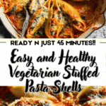 These Easy and Healthy Vegetarian Stuffed Pasta Shells are the perfect weeknight dinner! Packed with a creamy ricotta and spinach filling, topped with savory marinara sauce, and baked to perfection, this wholesome vegetarian recipe is family-friendly, satisfying, and full of flavor. Ideal for meal prep or a cozy comfort meal without the guilt.