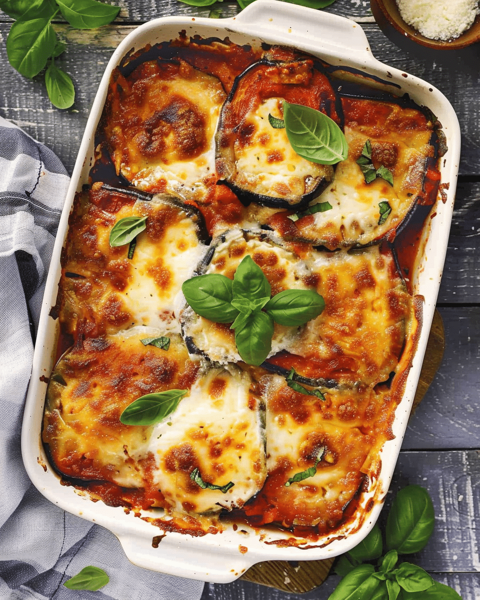 This Easy Eggplant Parmesan is a cozy, flavorful vegetarian dish that’s baked, not fried, for a healthier take on the classic. With crisp roasted eggplant, layers of rich marinara, creamy mozzarella, and savory Parmesan, it’s a comforting meal that’s as easy to make as it is satisfying to eat. Whether served as a hearty main or prepped ahead for guests, it’s sure to be a favorite at your table.