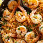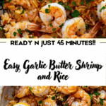 This easy garlic butter shrimp and rice recipe is a quick and delicious dinner made with juicy shrimp sautéed in garlic butter, served over fluffy rice for a comforting and flavorful meal.