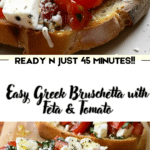 Easy Greek bruschetta with feta and tomato is a simple yet flavorful dish that delivers freshness in every bite. Whether you’re serving it as a quick appetizer, a party snack, or a light lunch, it brings together classic Mediterranean ingredients in a way that’s both satisfying and effortlessly elegant. Assemble just before serving for the perfect texture and enjoy!