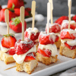 Store any leftover skewers in a single layer in an airtight container in the refrigerator. They’ll stay fresh and tasty for up to two days, though the cake may absorb moisture from the strawberries and soften. For best texture and taste, enjoy them the same day.