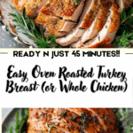 This easy oven-roasted turkey breast (or whole chicken) recipe delivers juicy, flavorful meat with minimal effort. Perfect for holiday dinners or weeknight meals, it features a simple seasoning rub and a foolproof roasting method.