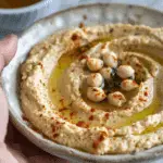 This easy and smooth hummus recipe yields a creamy, flavorful dip made with chickpeas, tahini, lemon juice, garlic, and olive oil. It’s perfect as a snack, appetizer, or spread for wraps and sandwiches.