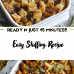 This easy stuffing recipe is a timeless holiday favorite that’s both simple and satisfying. Whether you’re serving it for Thanksgiving or a family dinner, its rich, herby flavor and classic texture make it a must-have side dish. Adapt it to your taste and enjoy the cozy, comforting goodness in every bite.